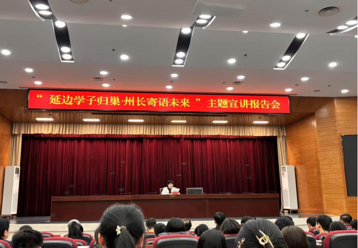 州政府副州长尹朝晖在宣讲中寄语学子心系家乡、锤炼本领、继承传统、勇担重任,诚邀大家学成归来,将个人理想融入家乡发展,共绘延边高质量发展新蓝图,为“十五五”开局贡献青春力量。