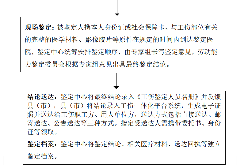 (三)结论送达:鉴定现场结束后,劳动能力鉴定委员会根据专家组意见为被鉴定人、用人单位出具鉴定结论,鉴定结论一般以纸质版《初次/复查鉴定结论通知书》(以下简称《结论通知书》)的形式送达给被鉴定人、用人单位。自作出鉴定结论之日起15日内,人社部门应将《结论通知书》及时送达给被鉴定人、用人单位指定受送达人。送达方式一般为直接送达、邮寄送达、公告送达,指定受送达人可自行选择。